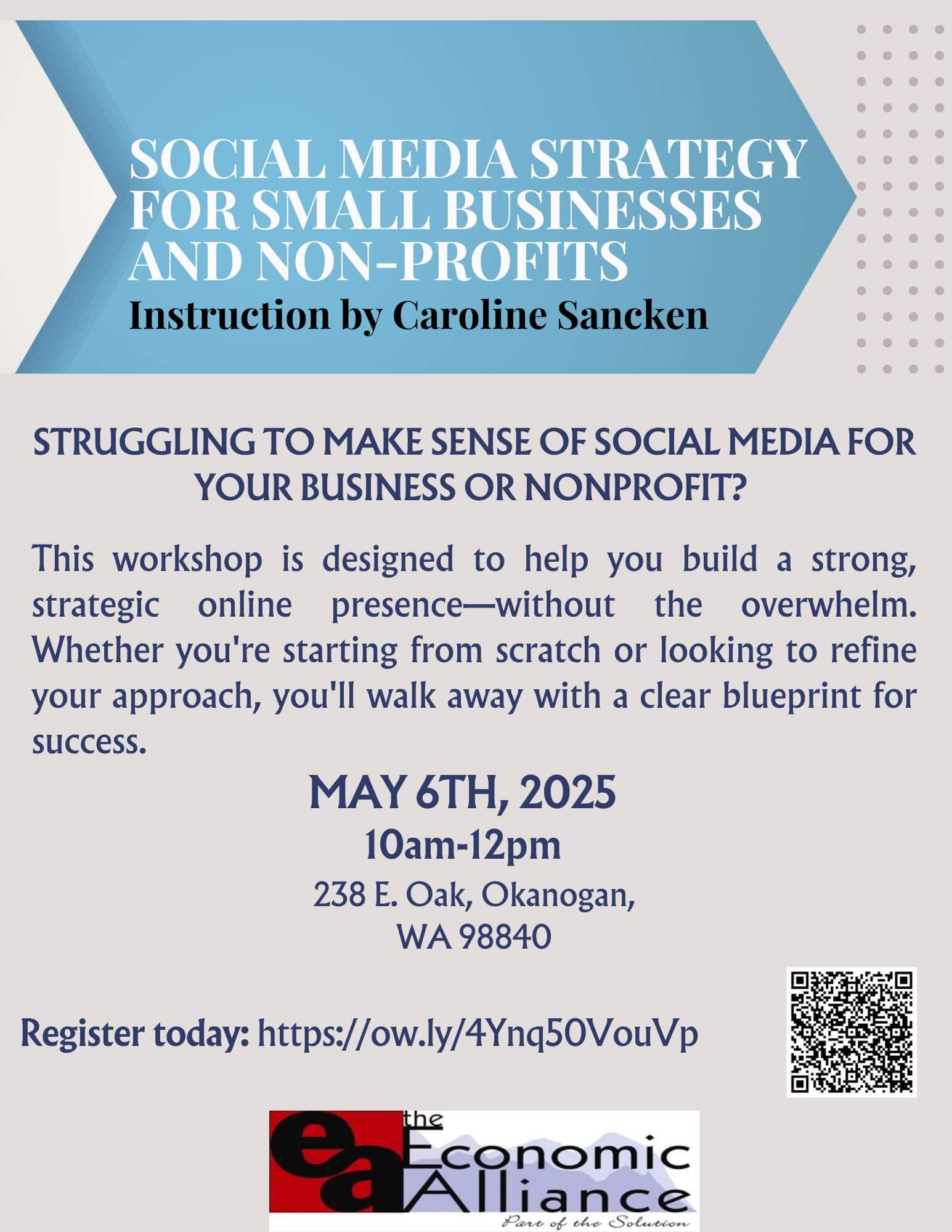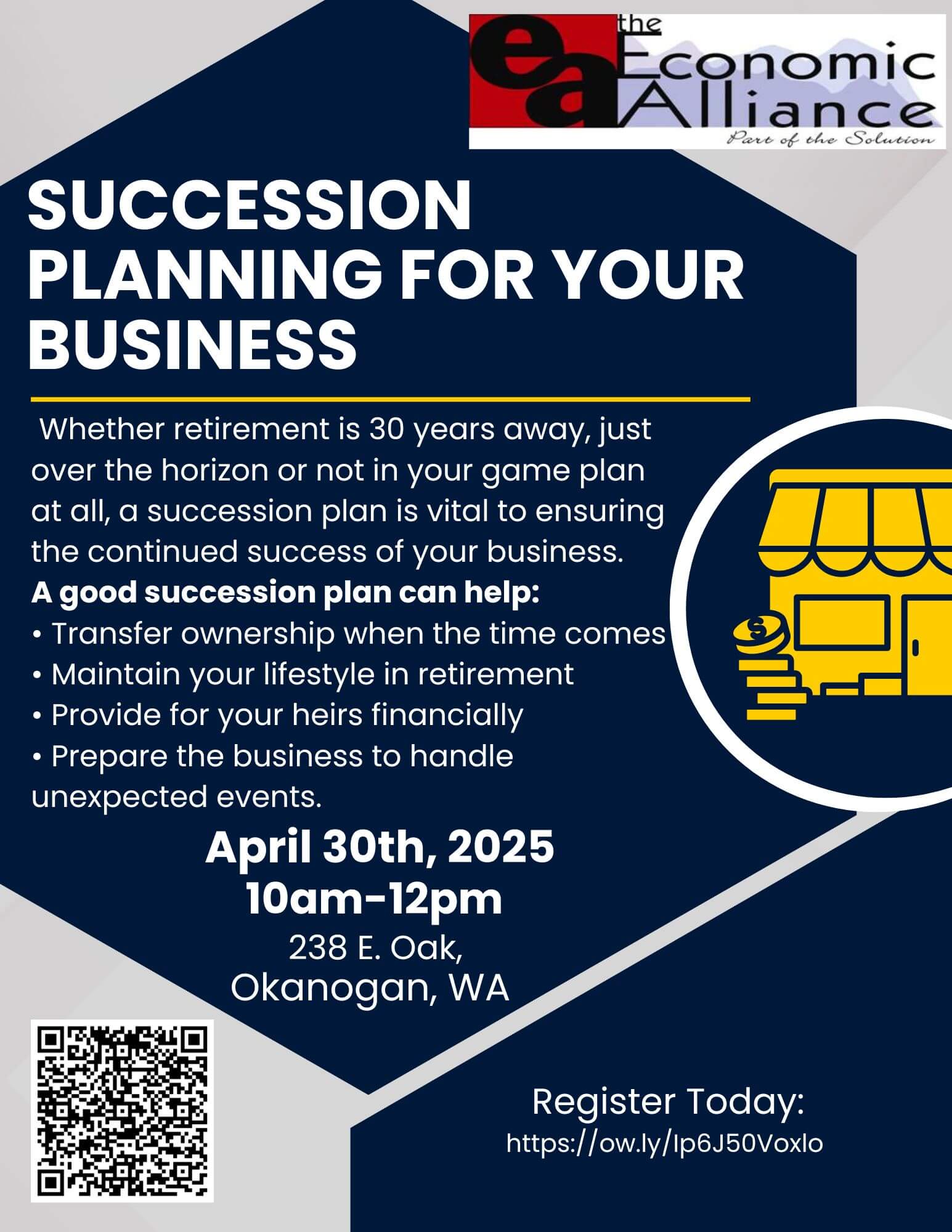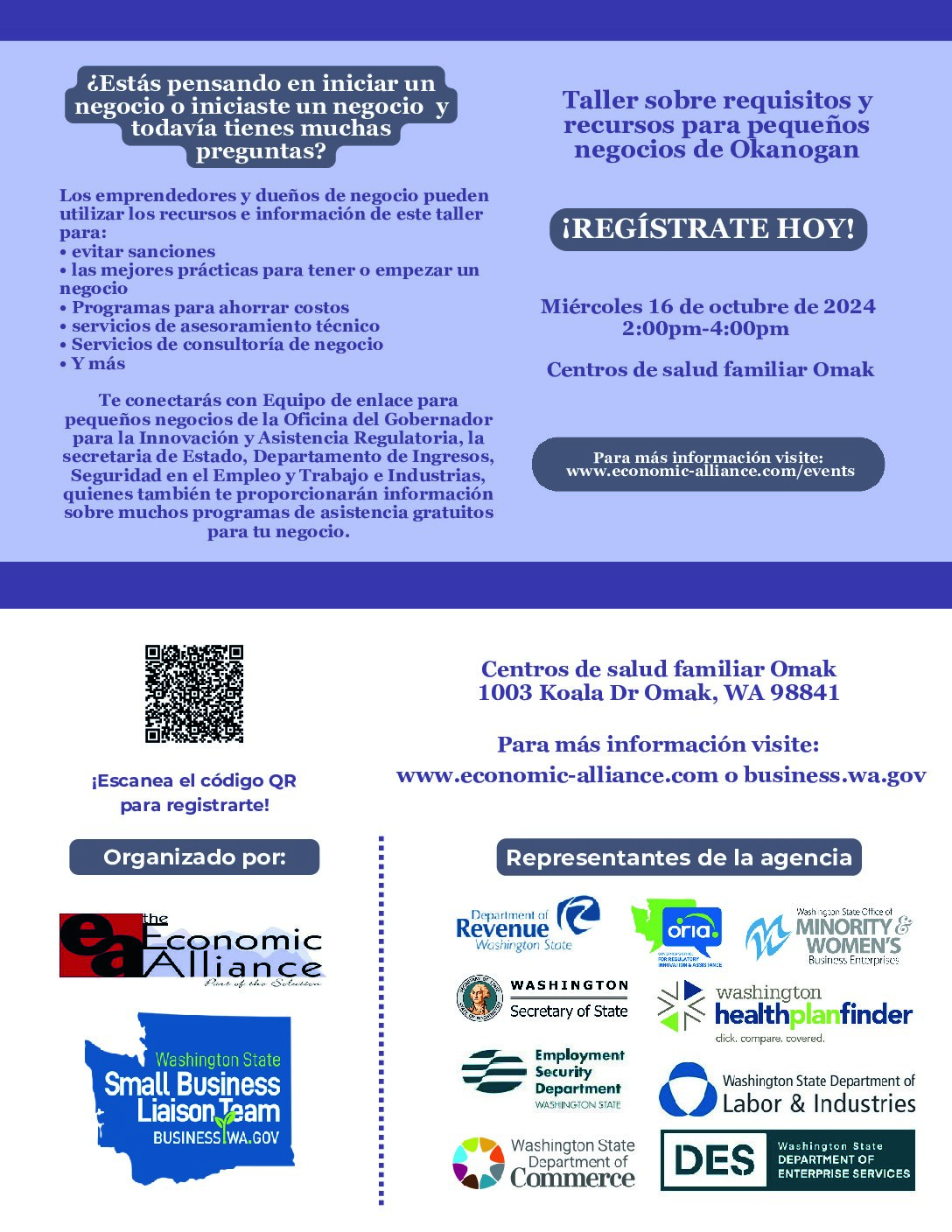 EA Office 238 E Oak, Okanogan, WAHave a Business Idea? Let’s make it happen! Learn basic business concepts and figure out if your business goals are realistic and achievable. Join us on September 19th, 26th, October...